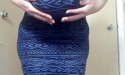 Attraktive Reife milf in engen Kleid und Strumpfhosen-Streifen