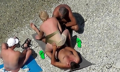 Unshaved mature rimming on the beach