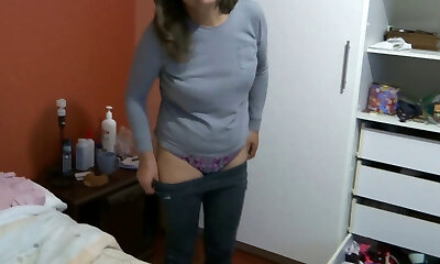 Old sexy Lukerya. Long pantaloons with lace cut into the pussy. Bottom view. Wooly pussy and big round ass.