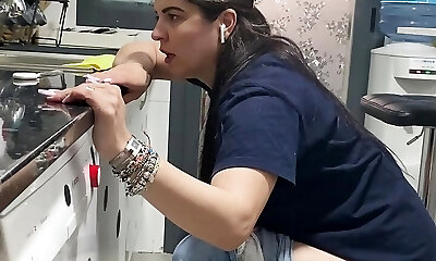 maid makes boss get a rock hard-on by seducing brief shorts! in the kitchen.