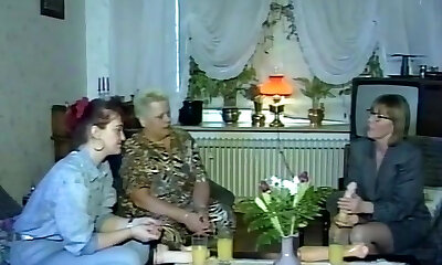 Two chesty and super-naughty German ladies sharing two hard peckers in the living room