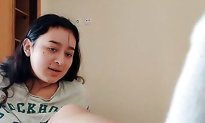Roommate helps him cum promptly in her panties while his parents wait outside
