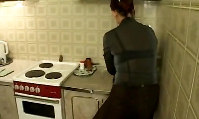Son pulled off tights from his mature mother (Russian home)