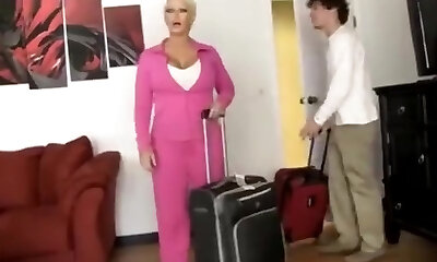Magnificent busty platinum-blonde mom seduces her young neighboor and gets sodomized